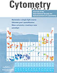 Mass cytometry is a recently introduced technology that utilizes transition element isotope-tagged antibodies for protein detection on a single-cell basis. By circumventing the limitations of emission spectral overlap associated with fluorochromes utilized in traditional flow cytometry, mass cytometry currently allows measurement of up to 40 parameters per cell. Recently, a comprehensive mass cytometry analysis was described for the hematopoietic differentiation program in human bone marrow from a healthy donor. The current study describes approaches to delineate cell cycle stages utilizing 5-iodo-2-deoxyuridine (IdU) to mark cells in S phase, simultaneously with antibodies against cyclin B1, cyclin A, and phosphorylated histone H3 (S28) that characterize the other cell cycle phases. Protocols were developed in which an antibody against phosphorylated retinoblastoma protein (Rb) at serines 807 and 811 was used to separate cells in G0 and G1 phases of the cell cycle. This mass cytometry method yielded cell cycle distributions of both normal and cancer cell populations that were equivalent to those obtained by traditional fluorescence cytometry techniques. We applied this to map the cell cycle phases of cells spanning the hematopoietic hierarchy in healthy human bone marrow as a prelude to later studies with cancers and other disorders of this lineage. |