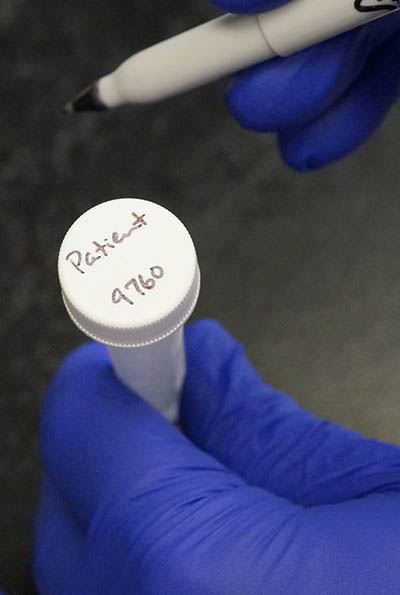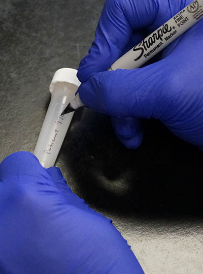 Write sample identifier code on rough textured region of each Smart Tube