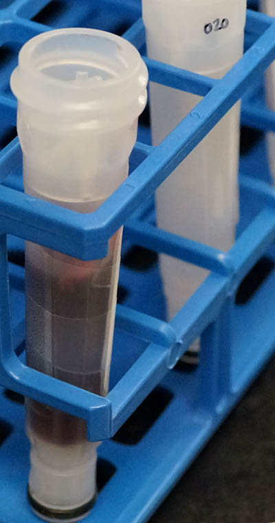 IMPORTANT: ADD EXACTLY 1 MILLILITER OF BLOOD TO EACH SMART TUBE. ADDING MORE OR LESS THAN 1 MILLILITER OF BLOOD WILL CHANGE REACTION CHEMISTRY AND WILL MAKE SAMPLE UNRECOVERABLE